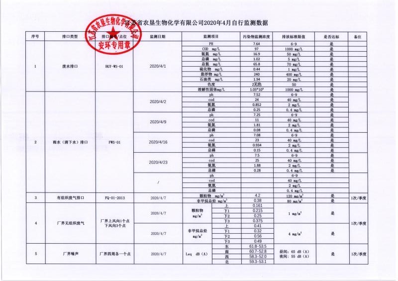 2020年4月自行监测数据