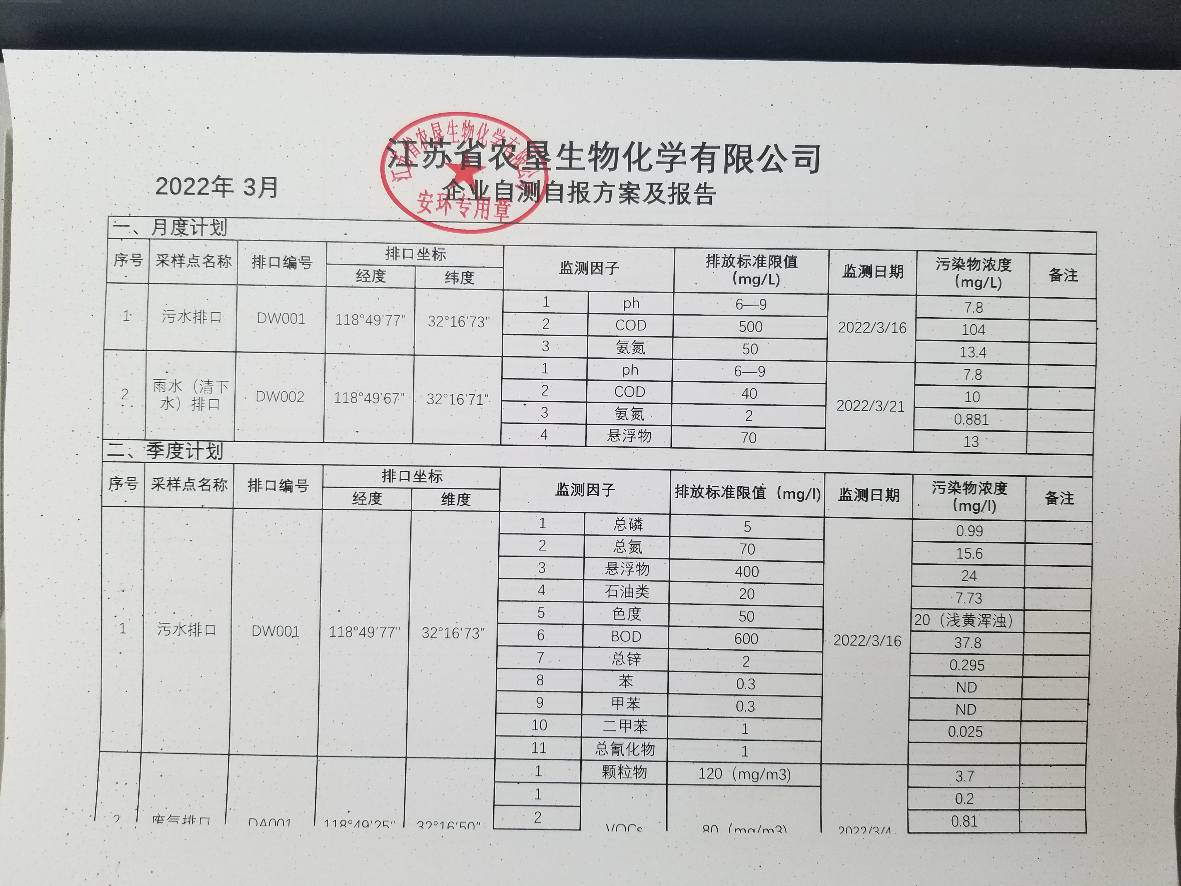 2022年3月自行监测