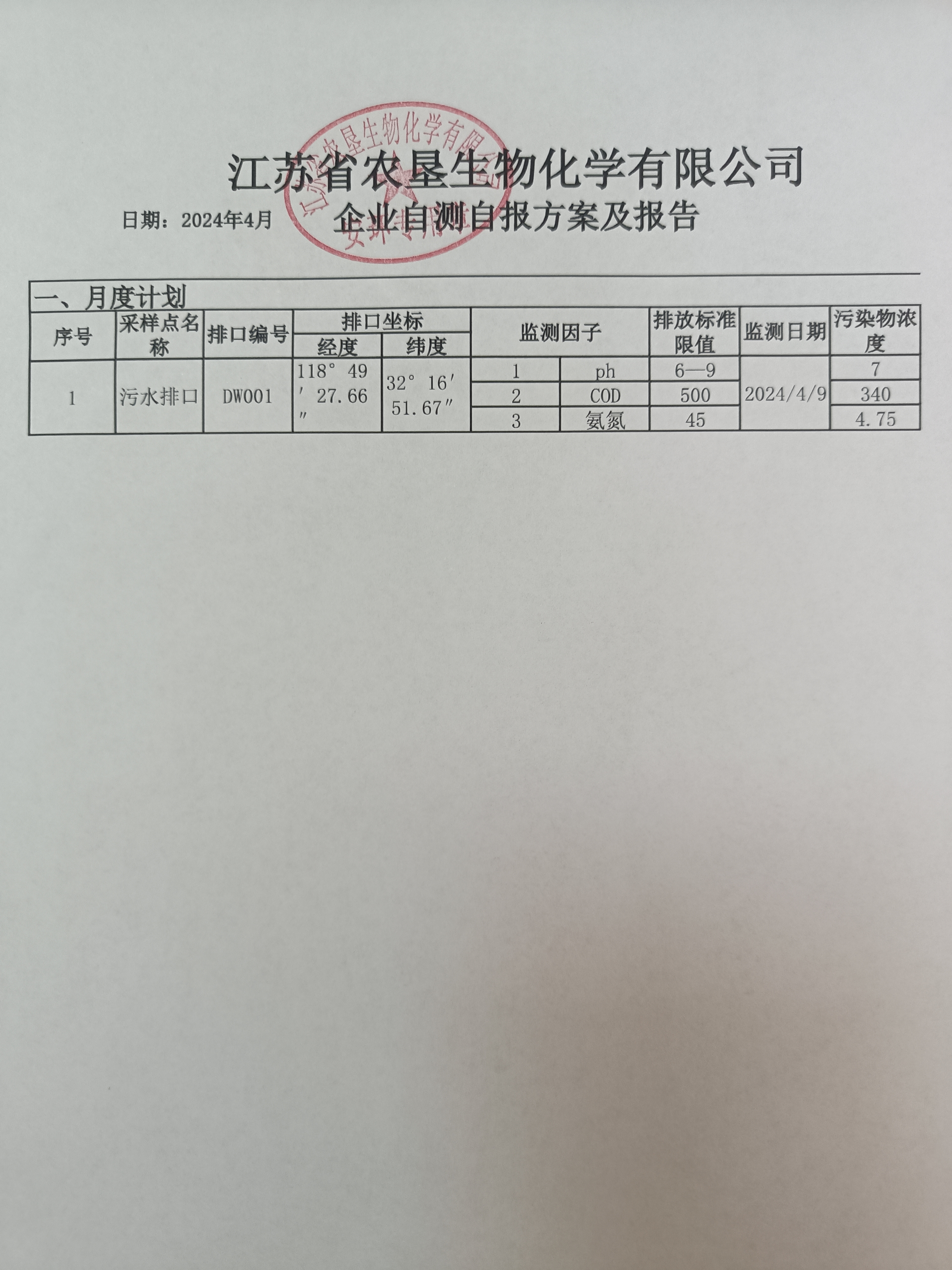 2024年4月自行监测