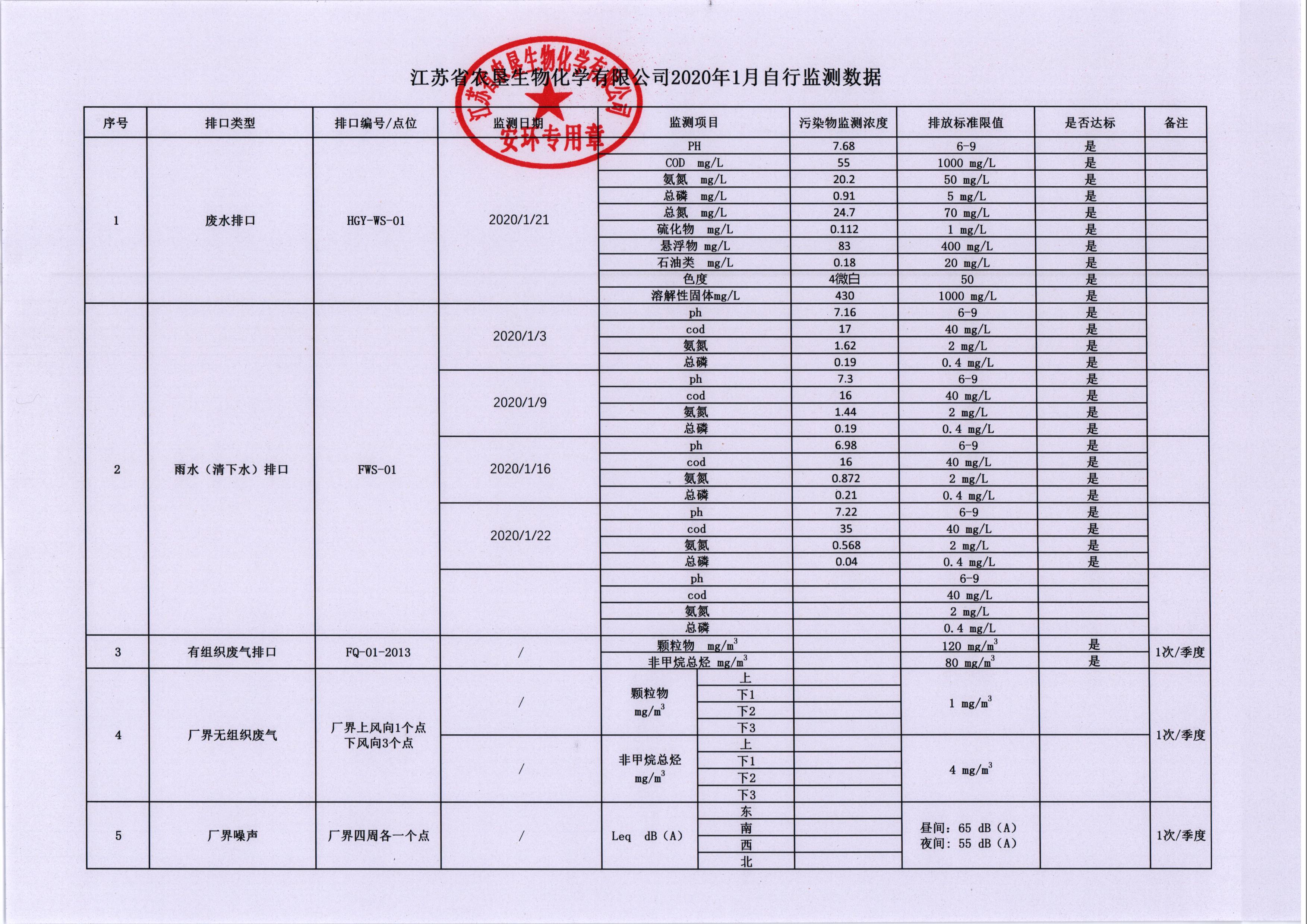 2020年1月自行监测数据