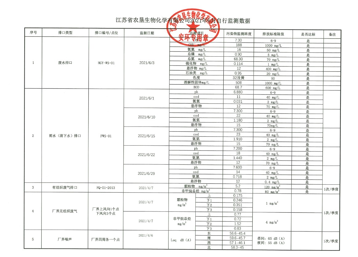 2021年6月自行监测