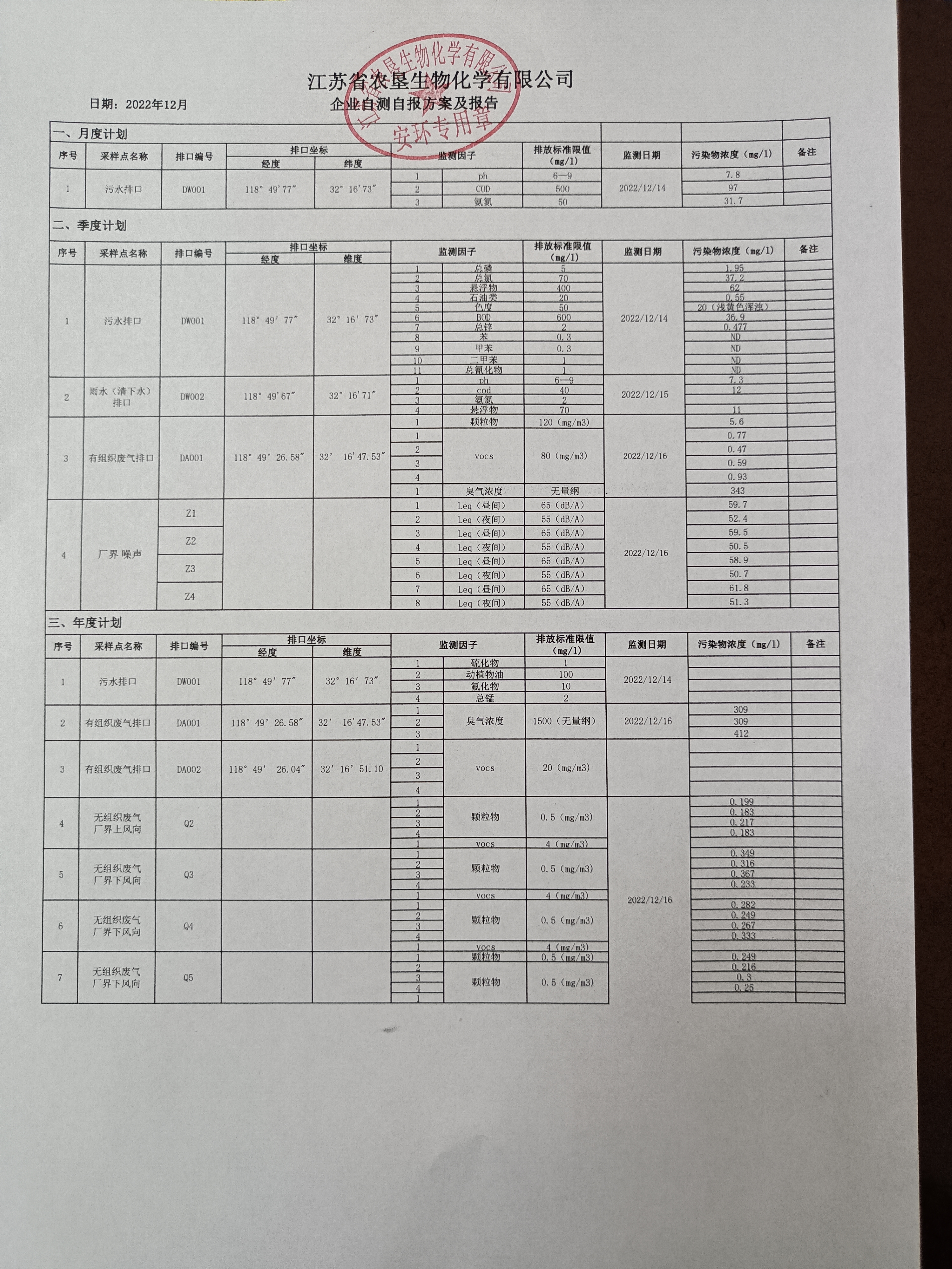 2022年12月自行监测