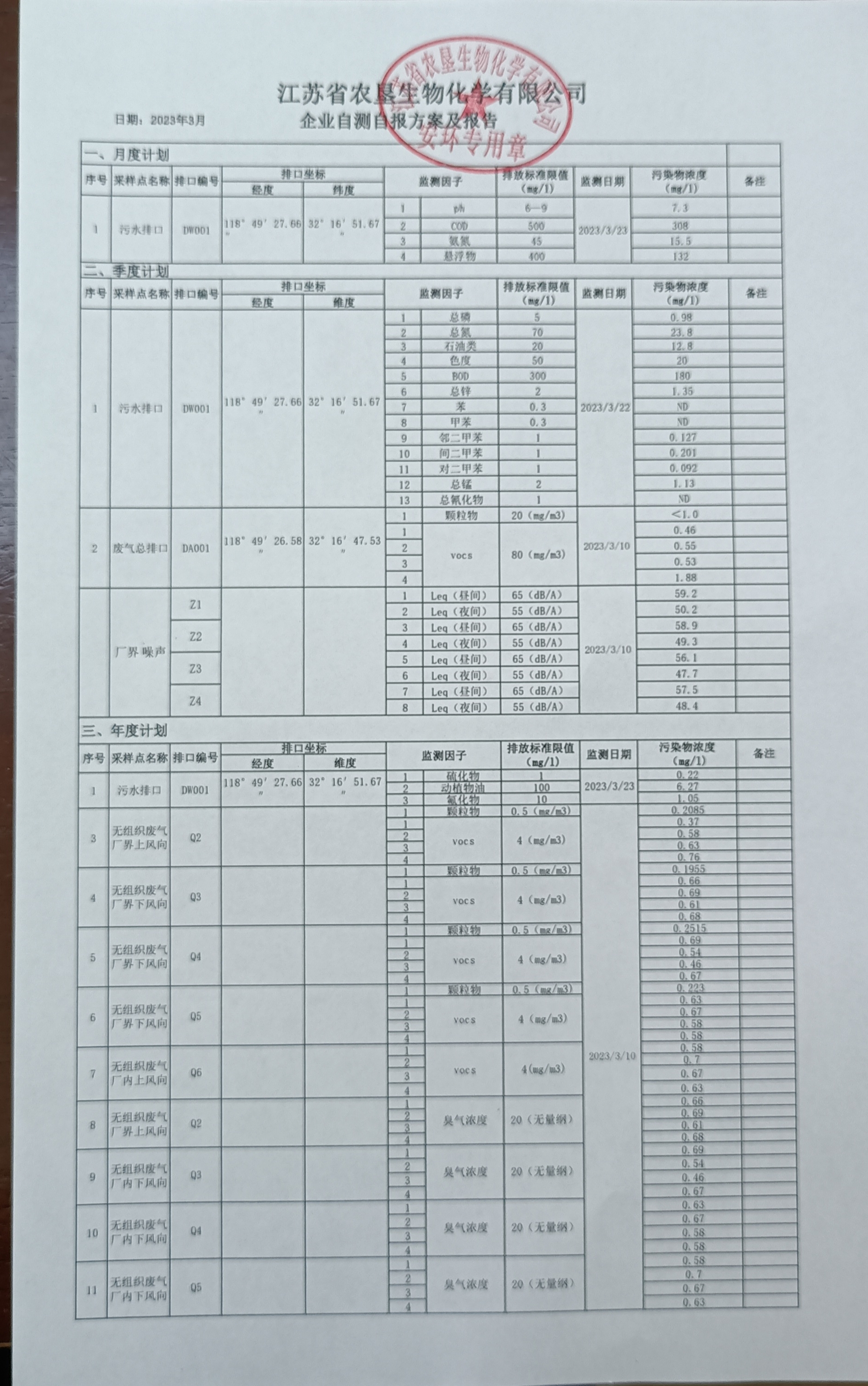 2023年3月自行监测