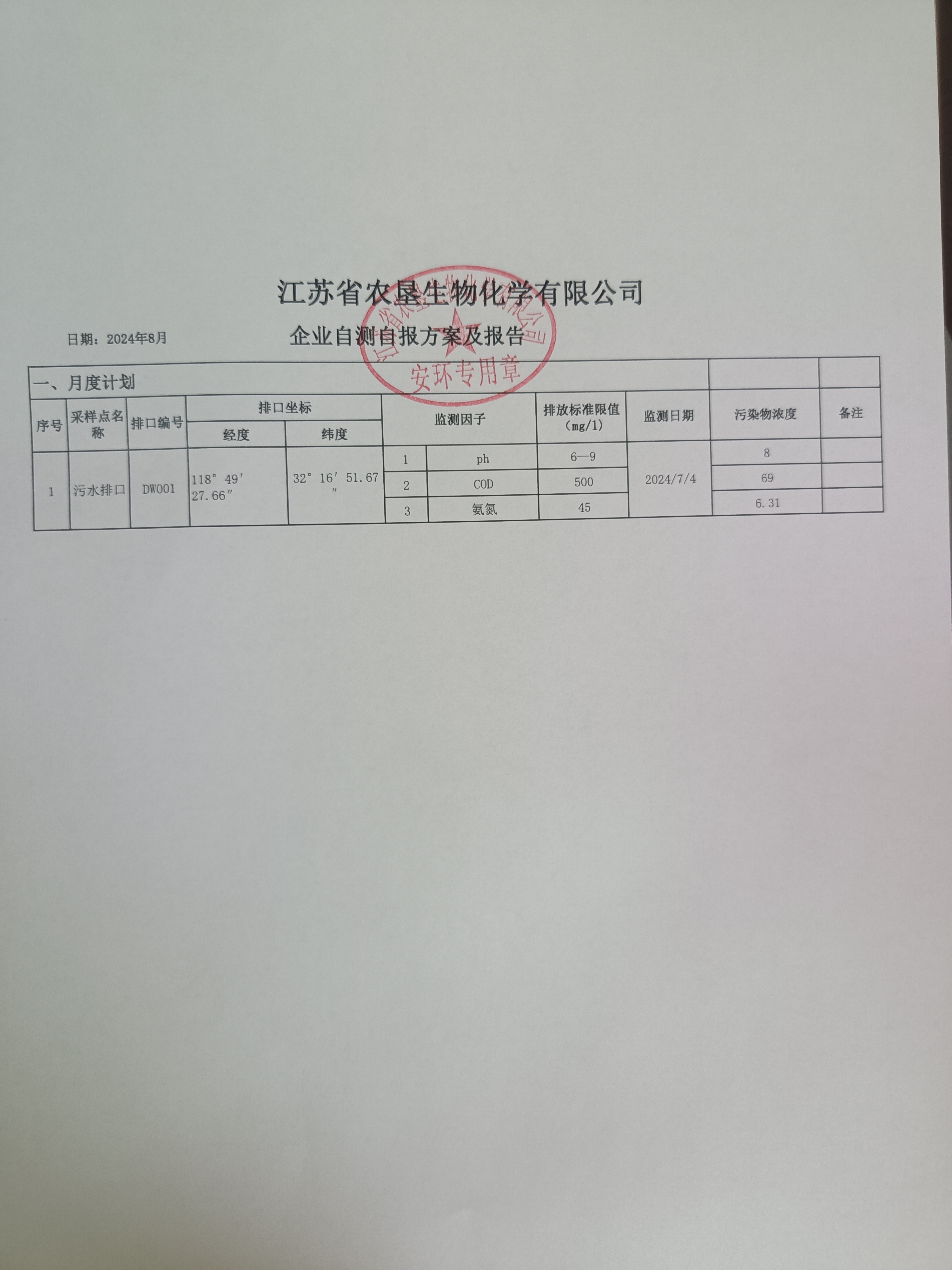 2024年7月自行监测